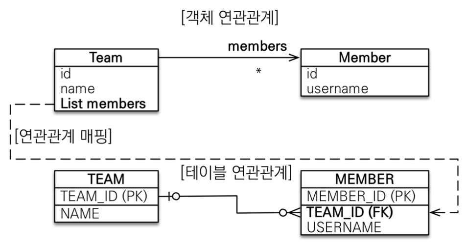 - 객체는 컬렉션을 사용해서 객체 2개로 다대다 관계 표현이 가능하다.