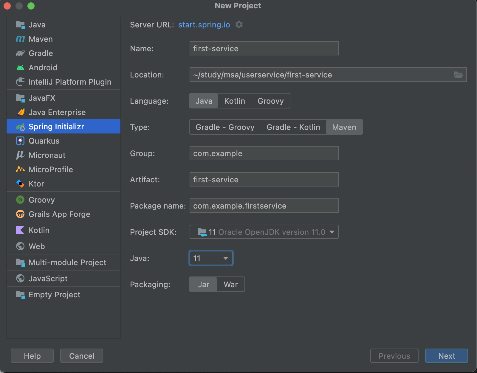 일단 간단하게 first-service, second-service 2가지를 만든다.