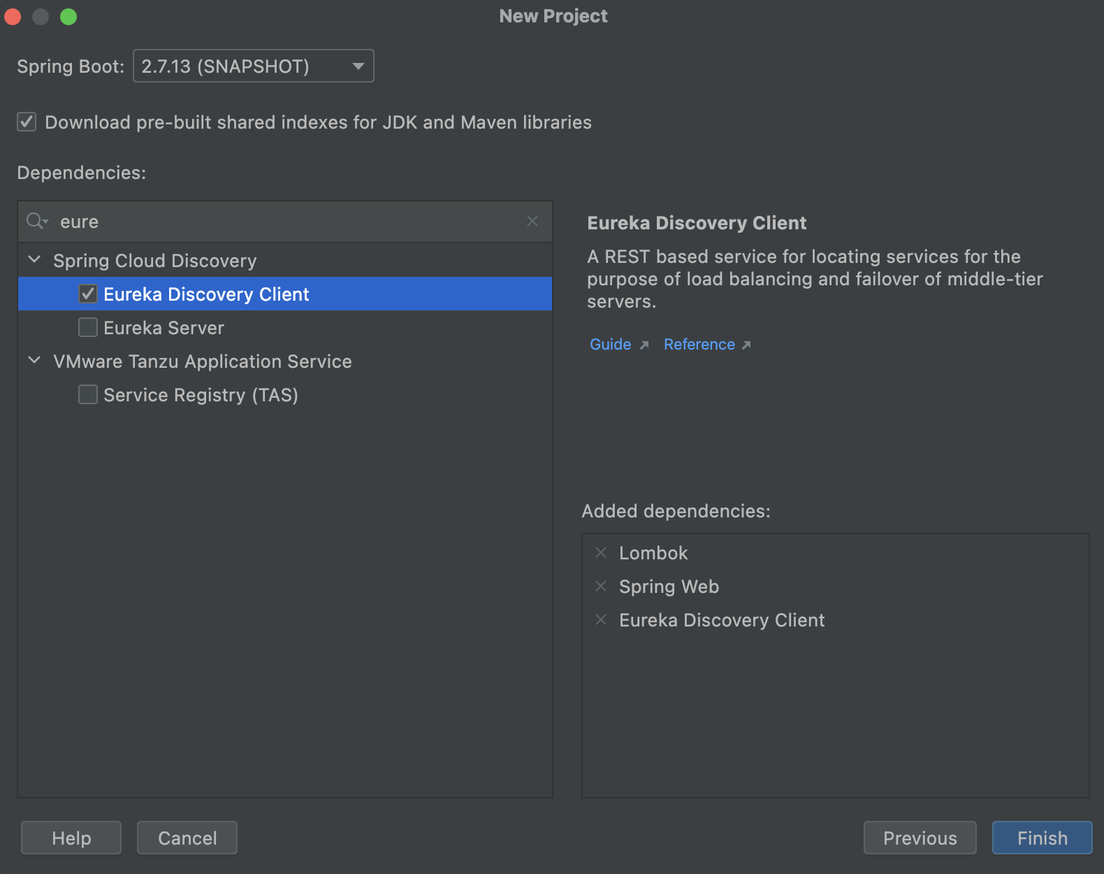 Gateway, Eureka Discovery Client, Lombok 3가지를 설정한다.
