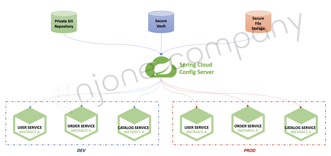분산 시스템에서 서버, 클라이언트 구성에 필요한 설정 정보(application.yml)를 외부 시스템에서 관리하는것이다. 하나의 중앙화 된 저장소에 구성요소를 관리가 가능하다.